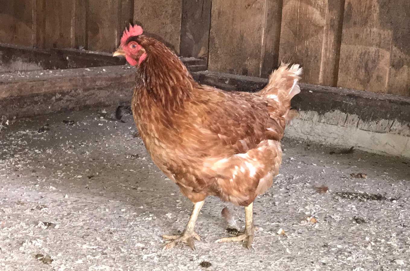 Unsere Legehennen haben großzügigen Auslauf bis in den angrenzenden Wald. Fütterung nur mit genfreiem heimischen Getreide.